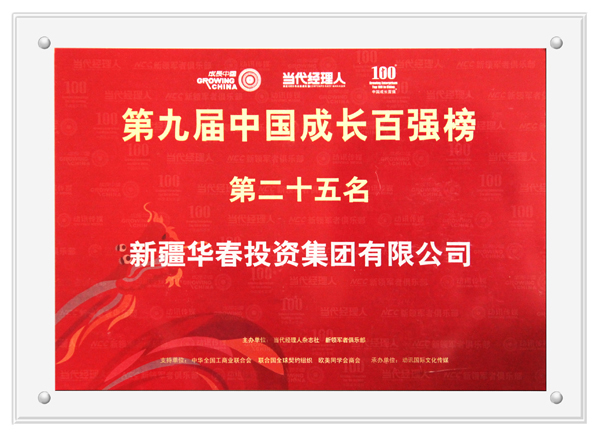 新疆華春投資集團(tuán)有限公司入選“2010中國成長百強”第25名