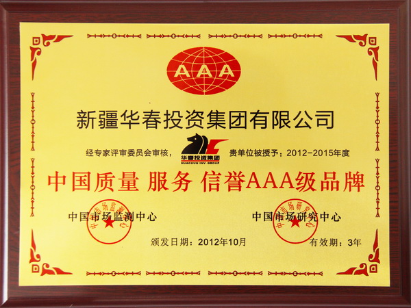 中國質(zhì)量服務(wù)信譽(yù)AAA級(jí)品牌