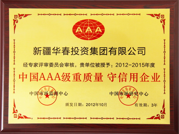 中國(guó)AAA級(jí)重質(zhì)量守信用企業(yè)