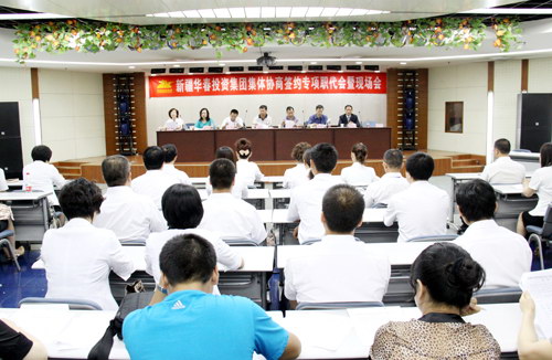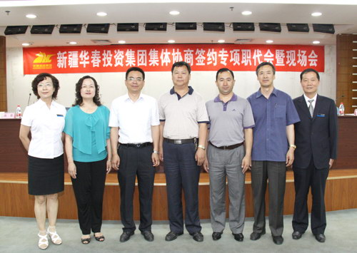 6月15日上午,對(duì)于新疆華春投資集團(tuán)全員來(lái)說(shuō),是個(gè)神圣的日子,在我們偉大的中國(guó)共產(chǎn)黨成立90周年的前夕,在全社會(huì)著力構(gòu)建和諧、改善民生的關(guān)鍵時(shí)刻,作為高新區(qū)(新市區(qū))簽訂三項(xiàng)集體合同的重點(diǎn)示范企業(yè)新疆華春投資集團(tuán)集體協(xié)商簽約專項(xiàng)職代會(huì)暨現(xiàn)場(chǎng)會(huì),在高新區(qū)管委會(huì)5樓多功能廳隆重舉行!自治區(qū)總工會(huì)、烏魯木齊市總工會(huì)和高新區(qū)(新市區(qū))區(qū)委領(lǐng)導(dǎo)出席會(huì)議,高新區(qū)(新市區(qū))轄區(qū)內(nèi)各主要企業(yè)派代表前來(lái)觀摩,共同見證了受華春投資集團(tuán)法定代表人委托的企業(yè)方代表周躍江先生和職工方的代表華春投資集團(tuán)工會(huì)主席高青同志,簽訂“三項(xiàng)合同”即《集體合同》、《工資集體協(xié)議合同》和《女職工權(quán)益保護(hù)專項(xiàng)集體合同》。