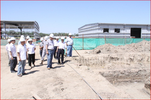 建筑工地,暑氣蒸騰,華春黨委書記嚴天利、工會主席高青、總裁助理李榮桂等行政管理人員在工地與一線施工人員親切交談,了解工程的建設進度,親切詢問了工人們的作息時間和生活情況,對工人們戰(zhàn)高溫、搶工期、保質量的高尚敬業(yè)精神給予了高度評價。希望一線人員要保重身體,嚴格按照安全操作規(guī)程進行施工,以確保暑期的施工安全。