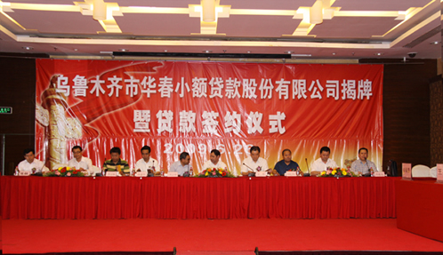 烏魯木齊市華春小額貸款股份有限公司揭牌暨貸款簽約儀式于6月26日在銀都酒店國(guó)際會(huì)展中心隆重舉行,自治區(qū)黨委常委肖開(kāi)提·依明與自治區(qū)政協(xié)副主席王偉共同為烏魯木齊市華春小額貸款股份有限公司揭牌,人大、金融界、自治區(qū)工商界直屬商會(huì)、企業(yè)家代表等約280人出席了揭牌暨貸款簽約儀式。