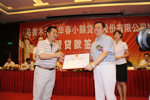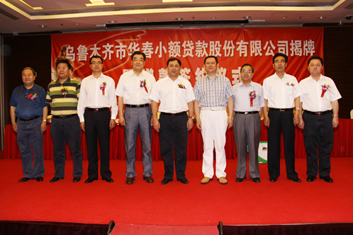 烏魯木齊市經(jīng)濟(jì)委員會(huì)黨組書(shū)記、主任、烏魯木齊市小額貸款公司試點(diǎn)工作領(lǐng)導(dǎo)小組辦公室奚永生主任宣讀批準(zhǔn)文件,烏魯木齊市工商行政管理局局書(shū)記王同晌向華春小額貸款股份公司法人李成功先生頒發(fā)了工商營(yíng)業(yè)執(zhí)照。