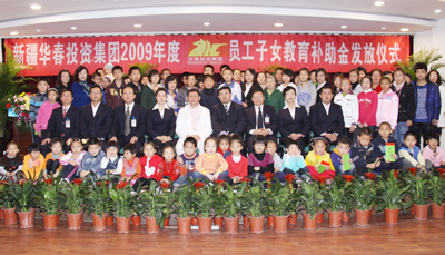11月1日,華春投資集團員工的近百名子女歡天喜地的迎來了一個在首府乃至在全疆絕無僅有的特殊節(jié)日——華春投資集團舉辦2009年首批員工子女教育補助金的啟動儀式,當天就有84個員工家庭的子女領(lǐng)到了近十萬元教育補助金,其中有一個員工家庭的3個子女同時獲得教育補助金,另一個員工家庭的兩個子女獲得了7000元。