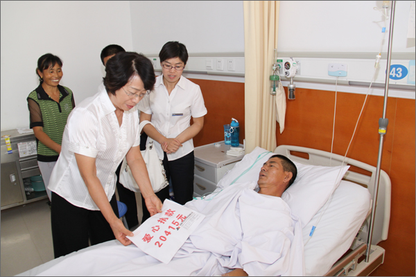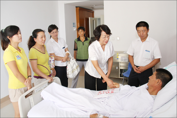 2012年7月27日下午,新疆華春投資集團(tuán)工會(huì)主席高青與集團(tuán)下屬的新疆華景物業(yè)服務(wù)有限公司、集團(tuán)人力資源部、行政辦及編輯部等部門的管理人員一行6人,帶著華春全員的真摯情意及慰問品,前往新疆醫(yī)學(xué)院看望慰問華景物業(yè)公司員工張瑞患病住院的父親。集團(tuán)工會(huì)主席首先向張瑞的父親轉(zhuǎn)達(dá)了李成功總裁對(duì)他的關(guān)心和誠(chéng)摯問候,送上了華春全員給他捐助的2萬多元的愛心捐款。