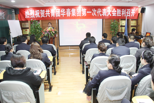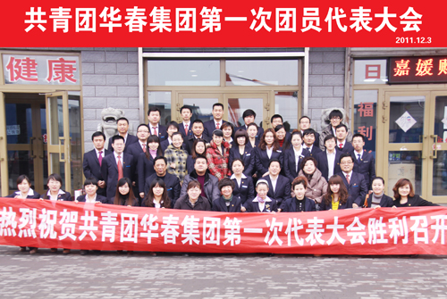 共青團華春集團第一次代表大會于2011年12月3日在恒潤公司培訓室勝利召開,大會由胡梅同志主持,此次會議正式代表、領導及嘉賓共計60余人出席會議,高新區(qū)(新市區(qū))團委副書記張新平同志、集團黨委書記嚴天利同志、集團黨委統(tǒng)戰(zhàn)部部長兼機關黨支部書記秦維華同志、華春毛紡黨支部書記郭鵬宏同志、恒潤公司黨支部書記孫業(yè)傳同志、華春商貿(mào)公司黨支部書記孫佳梅同志、團支部書記李卓軒同志出席大會開閉幕式。