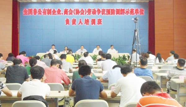 國家高度重視示范工作的進行,由國家人力資源社會保障部、人事司、調(diào)解仲裁管理司和中華全國工商聯(lián),共同組織對被確定為全國勞動爭議預防調(diào)解示范單位的負責人進行集中培訓。人社部仲裁管理司、全國工商聯(lián)、全國總工會、上海財經(jīng)大學法學院、中國人大勞動人事學院教授、上海市人社部仲裁院院長等領導和專家,從不同角度解讀了在新形勢下預防勞動爭議的思路和主要任務及有關政策、法律知識、疑難案件的評析、勞資的協(xié)商等有關勞動關系、勞動爭議的理論知識,以保障示范工作的有效開展。