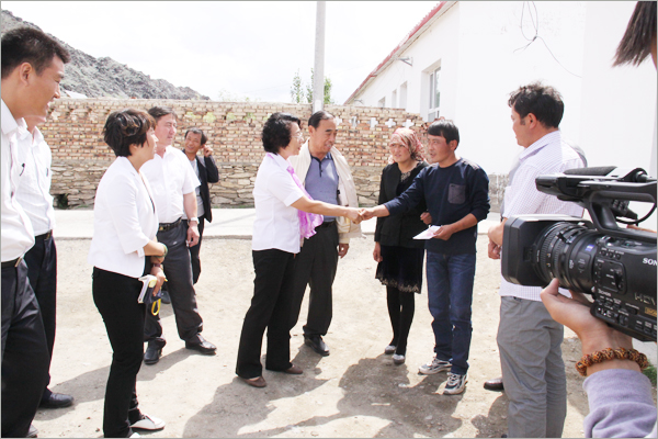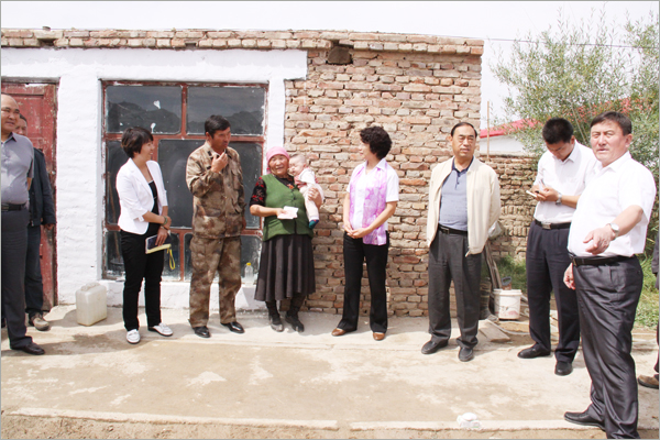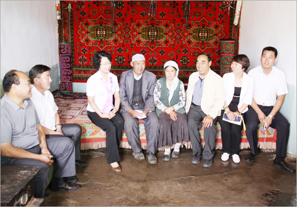 華春慰問組與五家渠師市有關(guān)領(lǐng)導(dǎo)在北塔山牧場負(fù)責(zé)人的陪同下,驅(qū)車先后來到下面的各牧業(yè)連隊(duì),慰問那里的困難牧民。那些受到華春資助的困難牧民家庭,當(dāng)接過華春慰問組給他家送來的500元慰問金時,感動得一時不知說什么好。對于他們素不相識的華春,卻特地在他們過節(jié)之前,來到他們都極少走出去的山溝,給予他們資金上的幫助。北塔山牧場畜牧二隊(duì)的卡斯木別克•努熱阿合麥提、牧場畜牧一隊(duì)的蘭黑恩•薩納提等牧民,一定要華春慰問組人員留下喝茶,要把過節(jié)的羊宰了招待華春人。看到華春慰問組人員謝絕而要離開他們時,緊緊握著華春慰問組人員的手。