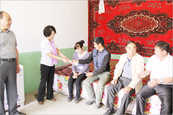 在少數(shù)民族傳統(tǒng)節(jié)日肉孜節(jié)即將到來前的8月4日-5日,為使新疆華春投資集團(tuán)下屬的華春毛紡公司穆斯林員工和五家渠農(nóng)六師少數(shù)民族貧困牧民能夠過上一個愉快、祥和的節(jié)日,華春集團(tuán)工會主席高青和集團(tuán)人力資源部部長胡梅、集團(tuán)下屬的華春毛紡公司總經(jīng)理助理白寶兵及集團(tuán)編網(wǎng)部汪剛等一行4人組成的慰問組,代表李成功總裁和華春全員,與五家渠師市主管經(jīng)濟(jì)和勞動就業(yè)的有關(guān)領(lǐng)導(dǎo)一同來到北塔山牧場,親切看望了在五家渠華春毛紡工業(yè)園工作的哈薩克族員工的家庭,同時,對北塔山牧場十多個困難牧民家庭進(jìn)行了慰問,并為每戶送去500元的慰問金,獻(xiàn)上華春集團(tuán)的一份心意。