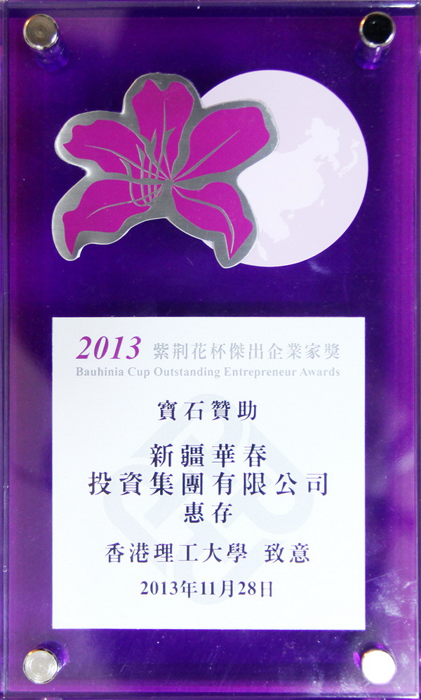 于前不久由紫荊花杯杰出企業(yè)家協(xié)會舉辦的“紫荊花杯杰出企業(yè)家” 盛大頒獎典禮儀式上,新疆華春投資集團總裁、紫荊花杯杰出企業(yè)家協(xié)會副理事長李成功先生和華春董事王春容女士,為樹立表彰對中國工商業(yè)及科技發(fā)展和社會進步作出積極貢獻的優(yōu)秀民營企業(yè)家先進典型、促進中國非公有制經(jīng)濟健康發(fā)展,鼎力贊助,榮獲“寶石贊助”獎。