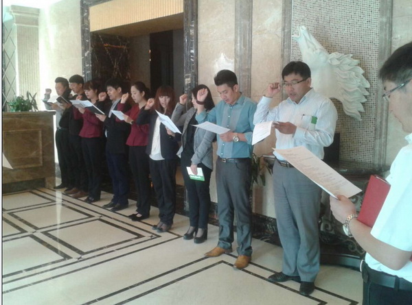 出色的業(yè)績源于專業(yè)的團(tuán)隊(duì),專業(yè)的團(tuán)隊(duì)源于點(diǎn)滴的努力。5月16日早上10:00整,由人力資源部總監(jiān)兼部長鐘江華牽頭,與銷售中心全員針對晨會的流程進(jìn)行演練,以此來規(guī)范并確定晨會的相關(guān)事宜。