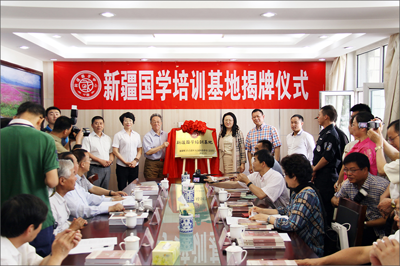 為弘揚(yáng)中華民族傳統(tǒng)文化精華、建設(shè)各民族共有的精神家園,由自治區(qū)人民政府參事室(文史館)主導(dǎo)的“新疆國學(xué)培訓(xùn)基地揭牌儀式”,于 6月23日在自治區(qū)政府參事室(文史館)會(huì)議室隆重舉行。國家文化部原部長、中央文史研究館館員、自治區(qū)人民政府文化顧問王蒙和自治區(qū)人民政府參事室(文史館)黨組書記張曉寧為新疆國學(xué)培訓(xùn)基地揭牌,標(biāo)志著自治區(qū)人民政府參事室(文史館)在我區(qū)設(shè)立的第一家國學(xué)培訓(xùn)基地在新疆華春投資集團(tuán)正式建立。