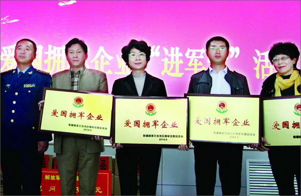 華春集團(tuán)自覺按照同呼吸、共命運(yùn)、心連心的要求,把關(guān)心支持國(guó)防建設(shè)、擁軍優(yōu)屬當(dāng)作義不容辭的責(zé)任,為部隊(duì)辦實(shí)事、辦好事,營(yíng)造了軍愛民、民擁軍,軍民魚水一家人的濃厚氛圍。華春集團(tuán)把擁軍優(yōu)屬作為一項(xiàng)重要工作,在重大節(jié)日對(duì)部隊(duì)進(jìn)行慰問。如在“八一”建軍節(jié)來臨之際,李成功總裁特地為駐地部隊(duì)官兵購(gòu)買的10臺(tái)三星平板電腦,由集團(tuán)管理人員一行8人組成的慰問團(tuán),專程向鋼鐵長(zhǎng)城部隊(duì)官兵送上了華春集團(tuán)全員的深情厚誼。又如為培養(yǎng)駐疆部隊(duì)軍地人才,能讓部隊(duì)的廣大官兵掌握最新信息,在數(shù)九寒天的冬季,華春集團(tuán)出資現(xiàn)金數(shù)萬元,為部隊(duì)訂購(gòu)全年度的黨報(bào),李成功總裁贈(zèng)親自帶隊(duì),送給部隊(duì)的同志們,從而為新疆的軍民團(tuán)結(jié)奉獻(xiàn)出華春集團(tuán)的一片心力……