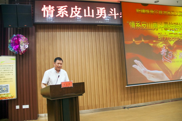 會上,自治區(qū)政協(xié)常委、見義勇為基金會副理事長、新疆華春投資集團(tuán)董事局主席李成功先生代表見義勇為基金會,宣讀了“情系皮山勇斗暴徒群體 助力反恐英模重建家園”公益活動倡議書。向全社會倡議全區(qū)各級黨政機(jī)關(guān)、企事業(yè)單位、社會團(tuán)體、民間組織和廣大黨員干部、愛心人士,響應(yīng)以習(xí)近平同志為總書記的黨中央、國務(wù)院號召,落實(shí)張春賢書記“感恩黨中央特殊支持,把恢復(fù)生產(chǎn)、重建家園作為重大任務(wù),確保受災(zāi)群眾安全過冬”的批示精神,伸出援助之手,為幫助在皮山縣發(fā)生6.5級地震中房屋嚴(yán)重受損的麥麥提敏•阿卜杜喀迪爾等6位反恐英模重建家園、恢復(fù)生產(chǎn)奉獻(xiàn)一片愛心、貢獻(xiàn)一份力量!