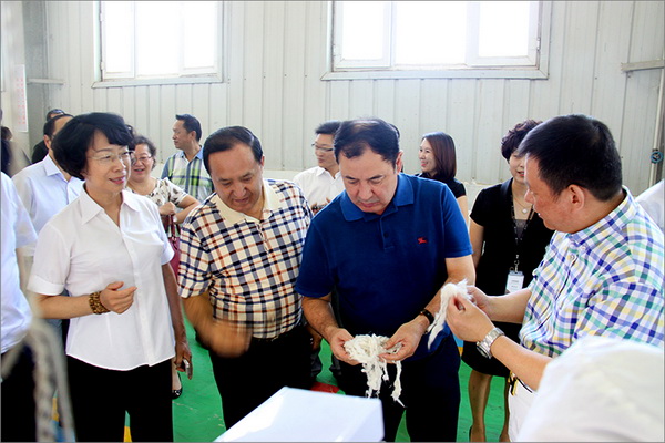 肖開提·依明常委一行首先參觀了新疆華春投資集團下屬的子公司華春毛紡AAA級旅游工業(yè)園區(qū),關(guān)心的了解該高檔羊絨加工生產(chǎn)基地的生產(chǎn)經(jīng)營銷售情況。調(diào)研過程中當(dāng)?shù)弥谌蚪?jīng)濟都下滑的形勢下,而華春的高檔羊絨制品出口銷售卻逆勢增長感到非常欣慰。接著,肖開提·依明常委一行來到員工餐廳,了解員工的工作與生活情況,鼓勵員工不斷學(xué)習(xí)創(chuàng)新,與企業(yè)一同成長。