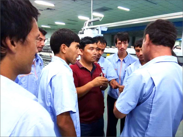目前,華春毛紡?fù)ㄟ^“一對一”由每位中高管人員對新員工進(jìn)行幫助、培訓(xùn)和輔導(dǎo),使這批新員工通過培訓(xùn)已經(jīng)上崗?fù)度牍ぷ?。華春毛紡工會特地為新員工購置了各類健身器材,在業(yè)余時間各位新員工鍛煉身體。和田地區(qū)專門安排3位干部到華春毛紡工業(yè)園隨訪南疆少數(shù)民族新員工,參觀了毛紡廠、針織廠、辦公樓和員工宿舍及餐廳等。華春管理人員就新員工的生活、工作安排及培訓(xùn)等各方面的情況進(jìn)行了詳細(xì)的匯報。和田地區(qū)隨訪干部認(rèn)為華春毛紡的安置工作全面細(xì)致、非常到位,表示感謝和給予了高度肯定。