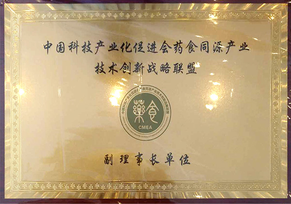 于5月27日在北京隆重舉辦的第七屆中國藥食同源健康產(chǎn)業(yè)發(fā)展暨新產(chǎn)品開發(fā)交流論壇上,中國高科技產(chǎn)業(yè)化研究會科技成果轉化協(xié)作工作委員會授予新疆華春生物藥業(yè)股份有限公司為中國科技產(chǎn)業(yè)化促進會藥食同源產(chǎn)業(yè)技術創(chuàng)新戰(zhàn)略聯(lián)盟副理事長單位。