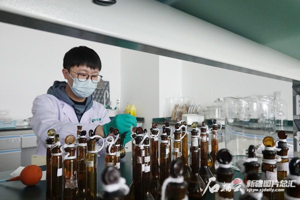 ![]() 在新疆特豐藥業(yè)股份有限公司,研究員正進(jìn)行藥品實(shí)驗(yàn)。石榴云/新疆日?qǐng)?bào)記者 趙敏攝