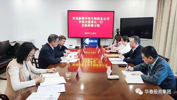 新疆華春生物藥業(yè)股份有限公司李成功董事長與華春藥業(yè)相關(guān)技術(shù)人員一行4人,于1月28日就相關(guān)合作事宜與中科院新疆分院、新疆醫(yī)科大學(xué)進(jìn)行了洽談。中科院院士中科院新疆分院院長、分黨組成員肖文交、新疆醫(yī)科大學(xué)黨委副書記校長阿吉艾克拜爾·艾薩及相關(guān)部門負(fù)責(zé)人員參加了洽談。