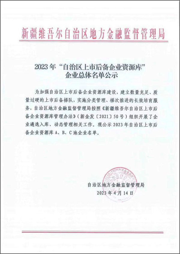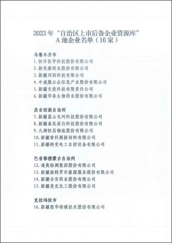 在華春集團迎來28周年華誕節(jié)的喜慶時刻,華春生物藥業(yè)又迎來重大喜訊——在自治區(qū)地方金融監(jiān)督管理局于4月14日公布的2023年“自治區(qū)上市后備企業(yè)資源庫”名單中,新疆華春生物藥業(yè)股份有限公司連續(xù)名列資源庫A池企業(yè)名單。真是雙喜臨門,喜悅之情溢于言表!