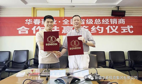 新疆華春生物藥業(yè)股份有限公司(簡稱華春生物藥業(yè))與第二批全國省級總經(jīng)銷商合作協(xié)議簽署儀式,于8月24日在新疆華春投資集團(tuán)舉行。新疆華春投資集團(tuán)董事局主席兼總裁、華春生物藥業(yè)董事長李成功先生,分別與江蘇龘龍醫(yī)藥科技有限公司研發(fā)負(fù)責(zé)人張永昌(江蘇省代)、北京麥爾信康科技發(fā)展有限公司總經(jīng)理王慶進(jìn)(北京省代)、河北思平生物醫(yī)藥科技有限公司總經(jīng)理高春雨(河北省代),簽訂了《“參葛補(bǔ)腎膠囊”推廣服務(wù)協(xié)議暨省級總經(jīng)銷協(xié)議》。華春生物藥業(yè)相關(guān)技術(shù)與管理人員參加簽署儀式。