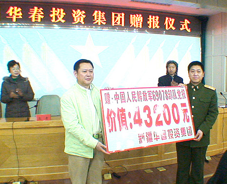 在數(shù)九寒天的1月11日,新疆華春投資集團(tuán)有限公司為了能讓69078部隊(duì)的廣大官兵及時(shí)了解國(guó)內(nèi)外各個(gè)方面重大經(jīng)濟(jì)信息、學(xué)習(xí)掌握新疆市場(chǎng)經(jīng)濟(jì)動(dòng)態(tài),以便能在今后市場(chǎng)經(jīng)濟(jì)的大潮中游刃有余,新疆華春投資集團(tuán)出資現(xiàn)金43200元,訂購(gòu)150份2008年全年度的《新疆經(jīng)濟(jì)報(bào)》,贈(zèng)送給69078部隊(duì)的同志們,從而為新疆的軍民團(tuán)結(jié)、為駐疆部隊(duì)軍地人才的培養(yǎng),奉獻(xiàn)出新疆華春投資集團(tuán)的一片心力。