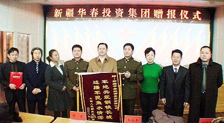 同時(shí),華春投資集團(tuán)也希望通過此次擁軍活動(dòng),與69083部隊(duì)建立長(zhǎng)期良好的軍地關(guān)系,讓我們無(wú)論在軍界、還是在商界,都聯(lián)起手來(lái),為了我們共同的目標(biāo),即推進(jìn)新疆的經(jīng)濟(jì)建設(shè)和保持新疆的社會(huì)穩(wěn)定,而貢獻(xiàn)力量。