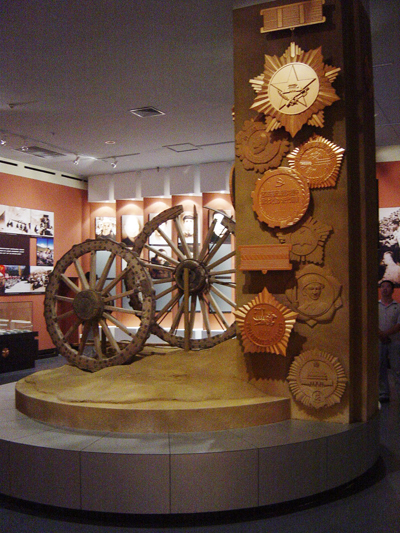 最令人感動(dòng)的是在大型穹幕展廳,逼真的展示著軍墾戰(zhàn)士在那西北邊陲天蒼蒼、野茫茫的亙古荒原,以其革命的樂觀主義精神戰(zhàn)天斗地的墾荒史,在他們手中奇跡般的將戈壁荒灘變成一個(gè)現(xiàn)代化的園林城市。軍墾精神,彪炳史冊(cè)!