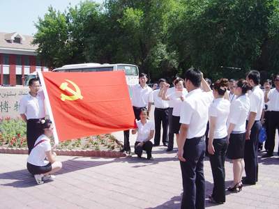 “我志愿加入中國共產(chǎn)黨……為共產(chǎn)主義奮斗終身,隨時(shí)準(zhǔn)備為黨和人民犧牲一切,永不叛黨”。這是新疆華春投資集團(tuán)黨委于6月19日組織黨員赴石河子參觀軍墾博物館和周恩來紀(jì)念館時(shí),面對(duì)鮮紅的黨旗,預(yù)備黨員進(jìn)行了莊嚴(yán)的入黨宣誓,老黨員們懷著激動(dòng)的心情重溫了入黨誓詞。