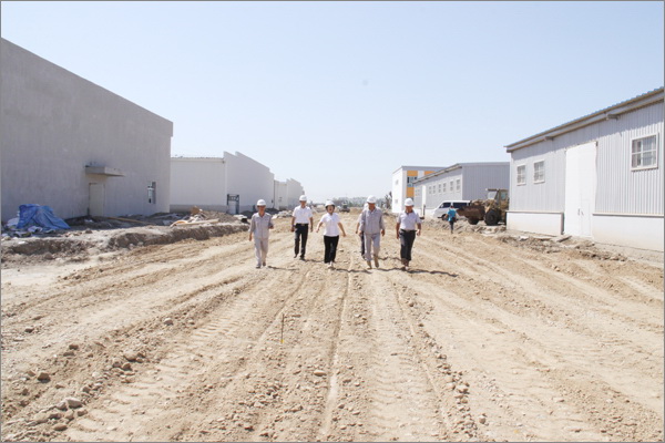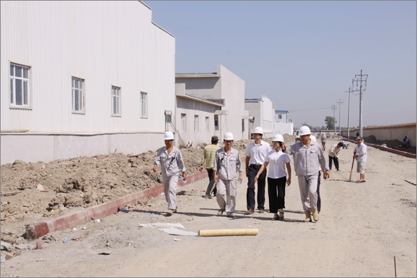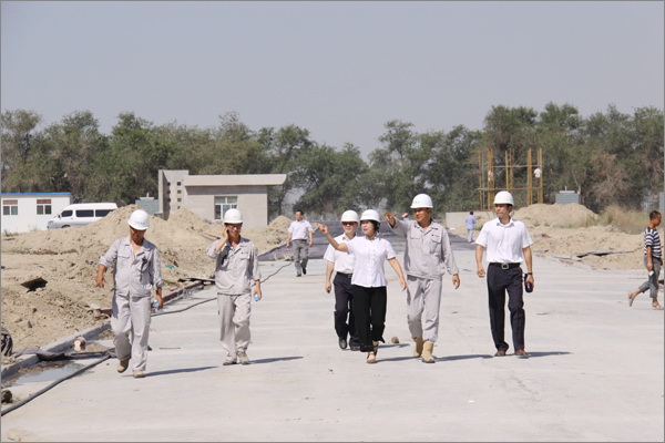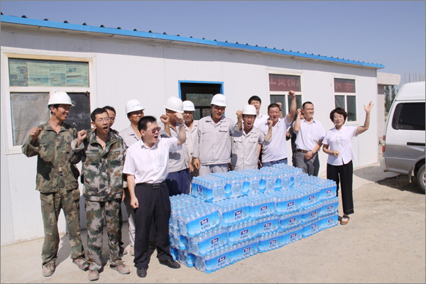 在新疆華春投資集團工會發(fā)出“決戰(zhàn)50天 建成毛紡工業(yè)園”號召后的20天,于7月31日集團工會主席高青攜編輯部全員,帶著李成功總裁和華春全體員工的期望,前往五家渠毛紡工業(yè)園項目建設工地,對工程技術(shù)人員“誓保毛紡工業(yè)園如期建成”諾言的兌現(xiàn)情況進行了解,同時對奮戰(zhàn)在一線的工程部、華春毛紡公司的員工和設備安裝人員進行了慰問,送去了礦泉水。
