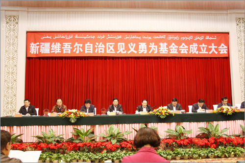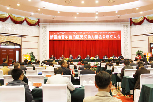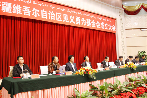自治區(qū)黨委、政府高度重視見(jiàn)義勇為基金會(huì)的成立,自治區(qū)主席努爾•白克力為基金會(huì)名譽(yù)會(huì)長(zhǎng),自治區(qū)黨委常委、政法委書(shū)記熊選國(guó)和自治區(qū)副主席、公安廳廳長(zhǎng)朱昌杰為基金會(huì)名譽(yù)副會(huì)長(zhǎng),原自治區(qū)人大常委會(huì)副主任張國(guó)梁擔(dān)任基金會(huì)理事長(zhǎng)。自治區(qū)黨政各部門(mén)領(lǐng)導(dǎo)參加了大會(huì),會(huì)議由自治區(qū)黨委副秘書(shū)長(zhǎng)、政法委常務(wù)副書(shū)記郭永輝主持。