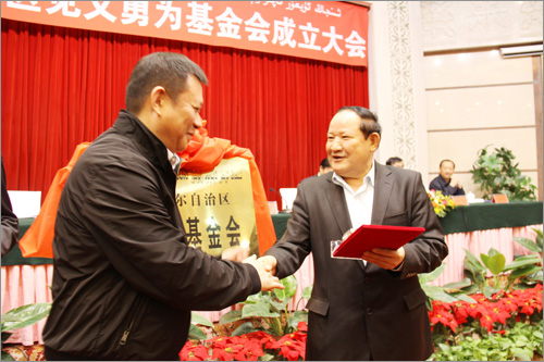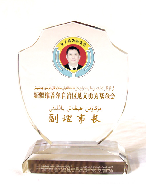 自治區(qū)見(jiàn)義勇為基金會(huì)成立大會(huì)于2012年10月19日上午在自治區(qū)人民大會(huì)堂多功能廳隆重舉行,新疆華春投資集團(tuán)董事局主席兼總裁李成功先生當(dāng)選自治區(qū)見(jiàn)義勇為基金會(huì)首屆理事會(huì)副理事長(zhǎng),自治區(qū)副主席、黨委政法委副書(shū)記賈帕爾•阿比布拉為李總裁頒發(fā)了副理事長(zhǎng)證書(shū)和座牌。