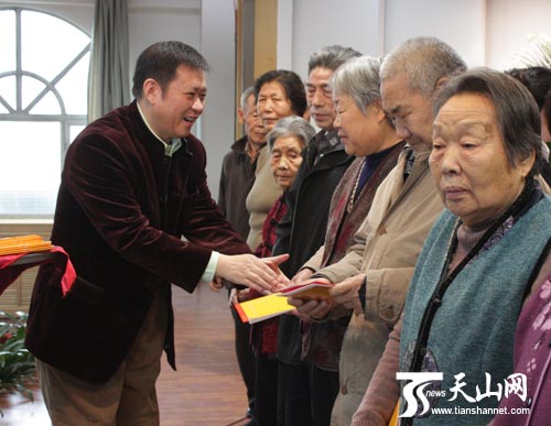 天山網(wǎng)訊(記者王樹勤攝影報(bào)道)11月25日上午,新疆華春投資集團(tuán)2009年度員工父母長(zhǎng)壽敬老基金發(fā)放儀式正式啟動(dòng),近百位員工的父母一個(gè)個(gè)手捧著裝有敬老基金的紅包,臉上洋溢著幸福和喜悅。自治區(qū)工商聯(lián)副主席艾爾肯·木沙長(zhǎng)等領(lǐng)導(dǎo)出席了發(fā)放儀式。