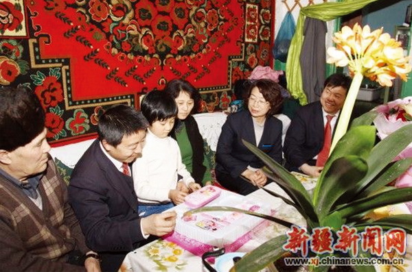 2012年“三八”國(guó)際勞動(dòng)?jì)D女節(jié)到來之際,華春投資集團(tuán)工會(huì)主席高青、工會(huì)委員鄭培君和已故員工阿里木·阿吾東生前所在企業(yè)即華春投資集團(tuán)下屬的新疆華景物業(yè)服務(wù)有限公司的管理人員一行,帶著華春投資集團(tuán)總裁李成功先生和華春全員的深情厚誼,特地前往已故員工阿里木·阿吾東的家慰問了其父母與妻子、孩子,送上鮮花和慰問品,致以誠摯的關(guān)愛之情并送上節(jié)日的祝福,使已故員工的家屬真切感受到了來自華春這個(gè)大家庭的關(guān)懷和溫暖。