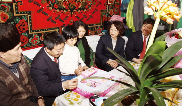 這是在2012年的“三八”國際勞動婦女節(jié)到來之際,華春投資集團工會主席高青、工會委員鄭培君和集團下屬的新疆華景物業(yè)服務(wù)有限公司的管理人員一行,帶著華春投資集團總裁李成功先生和華春全員的深情厚誼,特地前往已故員工阿里木·阿吾東的家,看望慰問了其父母與妻子、孩子,送上鮮花和慰問品,致以誠摯的關(guān)愛之情并送上節(jié)日的祝福,使已故員工的家屬真切感受到了來自華春集團這個大家庭的關(guān)懷和溫暖。