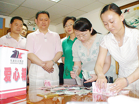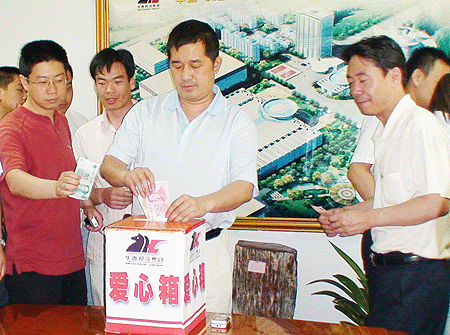 當(dāng)華春從新聞上得知5月12日下午四川汶川縣發(fā)生了7.8級強烈地震、突如其來的強烈地震襲擊了四川省汶川縣及其周邊地區(qū)造成了巨大的生命財產(chǎn)損失的消息后,華春企業(yè)工會和黨支部于13日發(fā)出向地震災(zāi)區(qū)群眾捐款救助倡議,災(zāi)難牽動著全體工友們的心,立即得到華春全體員工的積極響應(yīng),董事局主席兼總裁李成功先生帶頭捐款,大家紛紛向災(zāi)區(qū)獻(xiàn)出愛心。