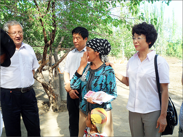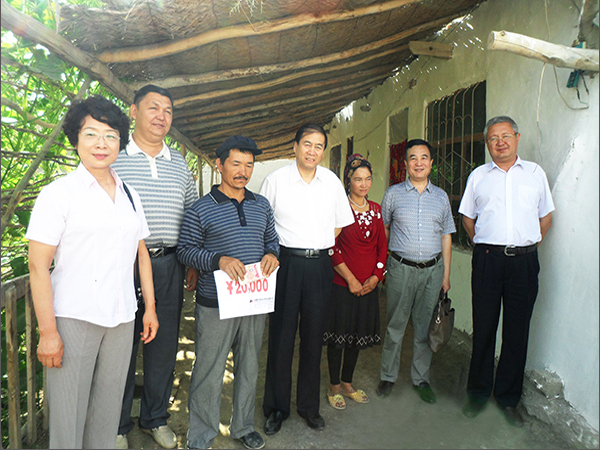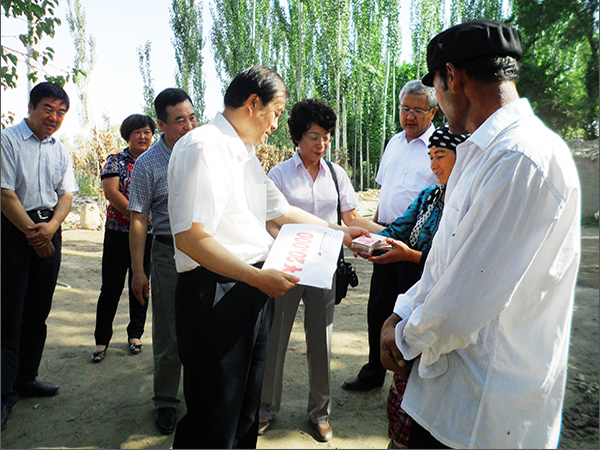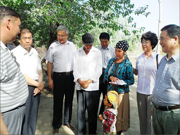 6月23-25日,由自治區(qū)政協(xié)副主席李湘林帶領(lǐng)自治區(qū)政協(xié)提案委員會(huì)和林業(yè)廳有關(guān)領(lǐng)導(dǎo)以及新疆華春投資集團(tuán)副總裁常青、工會(huì)主席高青一行6人組成的調(diào)研組,赴喀什地區(qū)巴楚縣夏馬勒鄉(xiāng)喀什噶爾買里村進(jìn)行調(diào)研扶貧,華春投資集團(tuán)為該村和貧困戶捐助現(xiàn)金共14萬元,為新疆的貧困地區(qū)的少數(shù)民族農(nóng)民獻(xiàn)上一片愛心。