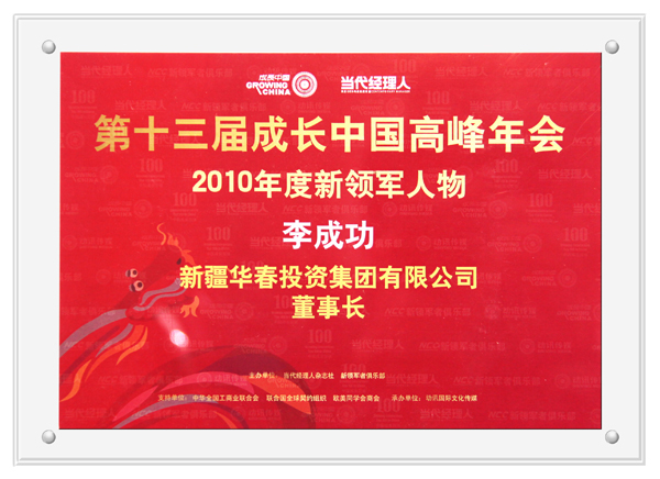 第十三屆成長中國高峰年會李總榮獲“2010年度新領(lǐng)軍人物”稱號